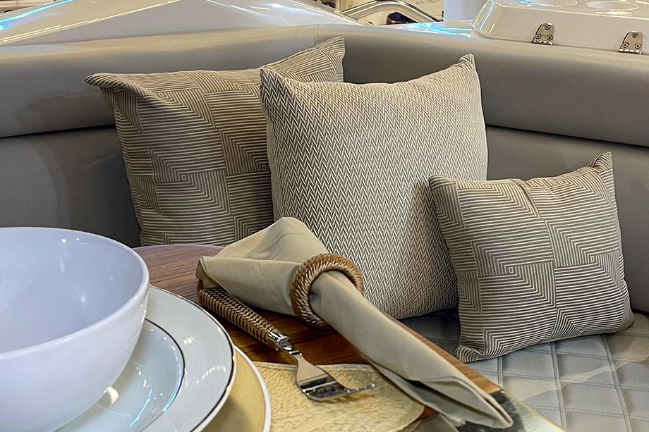 Para os conceitos apresentados, a yacht designer se reuniu com cada estaleiro algumas semanas antes do salão para definir detalhes sobre cada decoração. O resultado pôde ser visto pelos visitantes do São Paulo Expo.