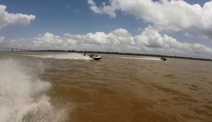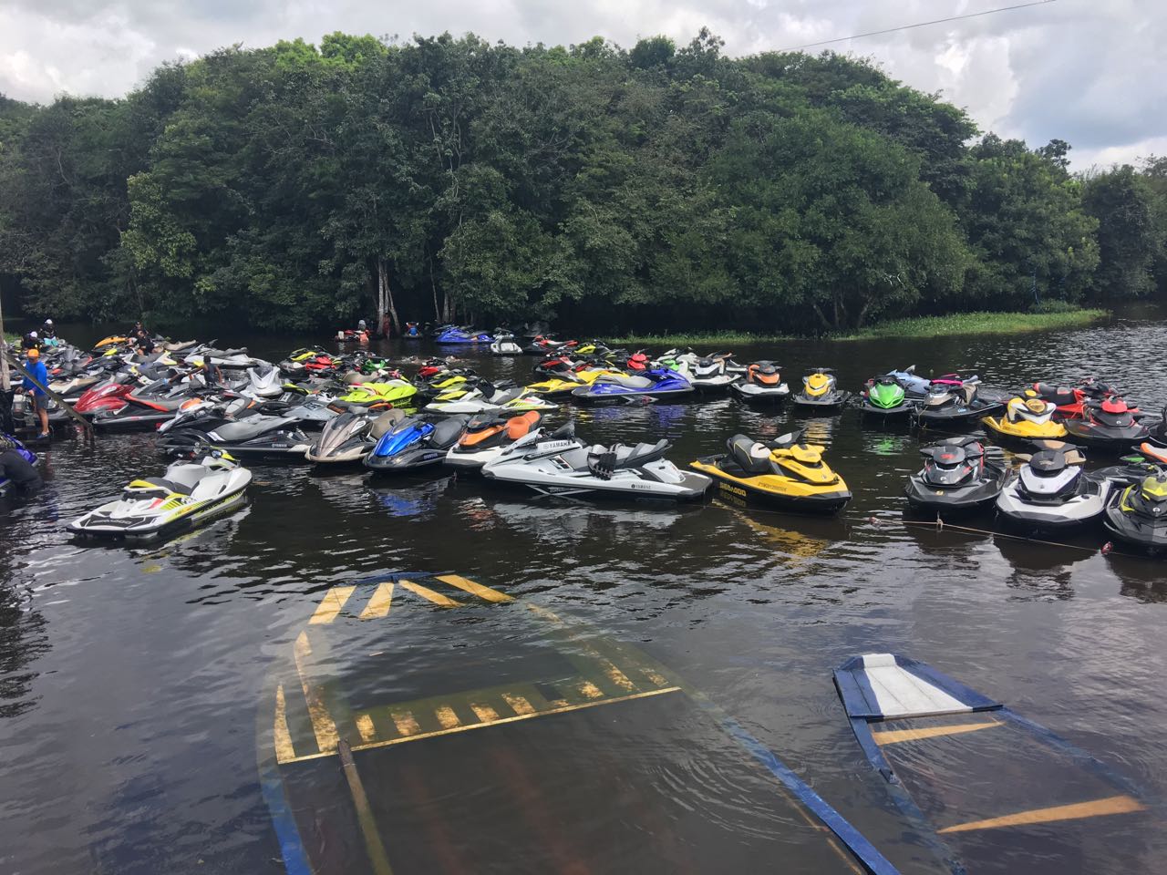 Belém do Pará foi palco para um grande encontro de jets no último sábado, 4. As turmas de jet Direct Jet, Kamikazes, Velozes & Furiosos e Club do Jet, reuniram 116 jets e cerca de 140 amigos no passeio que partiu da Marina Espaço Náutico, em Belém, e seguiu por cerca de 30 milhas até o Balneário Caraparu, no município de Santa Izabel, que abriga o Rio Caraparu, bastante sinuoso e que só enche em época de muita chuva.