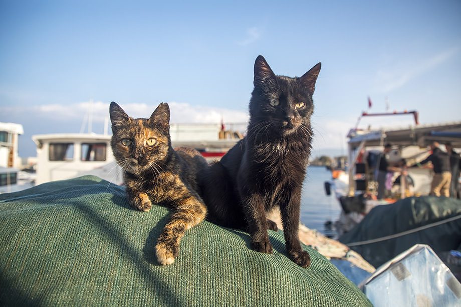 Já os gatos são mais limpos, higiênicos, bem mais silenciosos e se adaptam bem em qualquer espaço, mesmo os pequenos. Em contrapartida, não gostam de água e podem se perder facilmente nos desembarques, uma vez que precisam de referência fixa para se situar e achar o caminho de volta para casa.