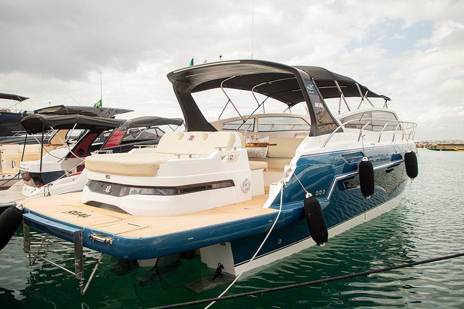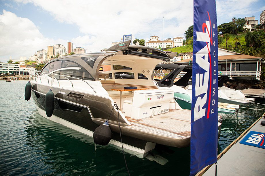 Pensando especialmente nos clientes baianos, a grande novidade da Real Powerboats ficou por conta da Real 38, que chega com o famoso motor de popa, bastante utilizado na região.