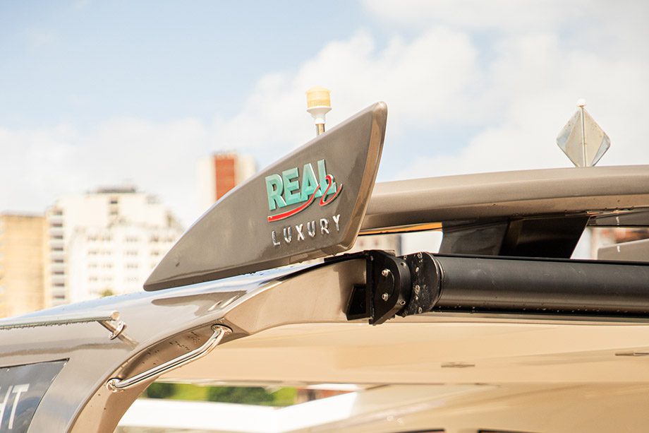 Na Real 37, o grande destaque é o solário, que confere equilíbrio e elegância nos passeios. Com ambientes bem divididos, o barco aposta em tornar cada espaço em um “momento especial”.