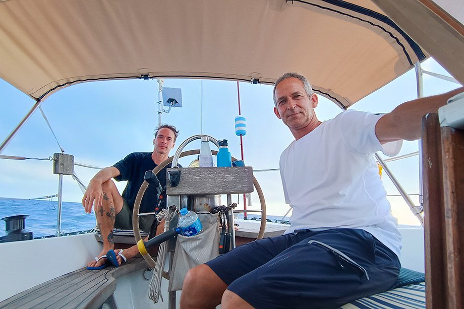 Além dele, completam o grupo o português — vindo diretamente da Austrália — Miguel Pimentel dos Anjos, seu “parceiro sexagenário”, como ele diz; Vinícius Melo, um navegador iniciante, vindo dos esportes radicais; José Guilherme, de 30 anos, experiente e dono de outro barco clássico, um Arpège; e Breno Osthoff, conhecido como Pavarotti, o mais jovem a bordo.