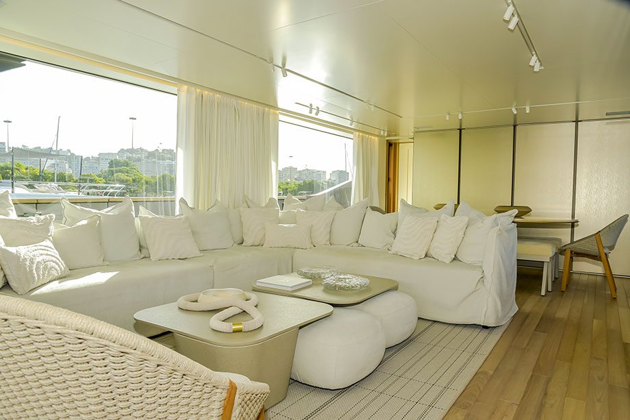 Nas palavras de Vasco Trindade, CEO da YB Nautic Group (marca que representa o estaleiro no Brasil), esse é “um barco que se destaca de longe, principalmente pelo design completamente diferente”. Não à toa: trata-se de uma embarcação de 27,43 metros de comprimento e 7 metros de largura.