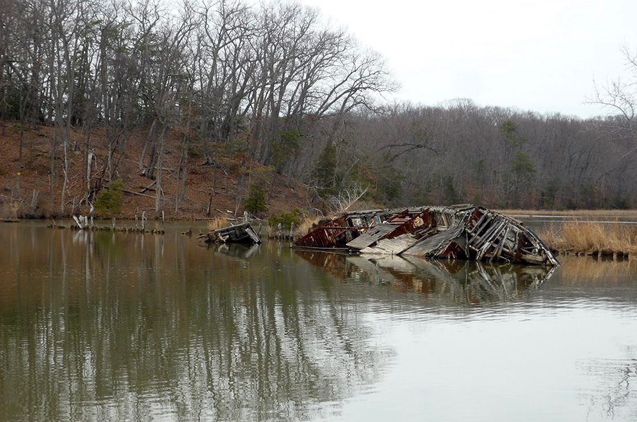 A “Frota Fantasma de Mallows Bay”, como ficou conhecida, reúne hoje os destroços de 147 barcos que, no século passado, foram desmanchados após a Primeira Guerra Mundial. Eles pertenciam a chamada “Frota de Emergência”, navios construídos às pressas para cobrir o transporte de suprimentos e tropas.
