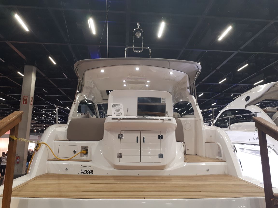 A Intech Boating está no Boat Show com a Sessa C40. Na versão 2017, o modelo tem área gourmet na popa, plataforma de popa submergível (veja o acessório em ação), novo hardtop com vidro e janela de proa. Com 12,30 metros de comprimento, a Sessa C40 acomoda até 12 passageiros em passeios durante o dia e até quatro em pernoite, instalados em dois camarotes – um duplo e um de casal. Pode ser equipada com dois motores Volvo D4 de 300 hp e está com preço especial para o evento a partir de R$ 1 368 000.