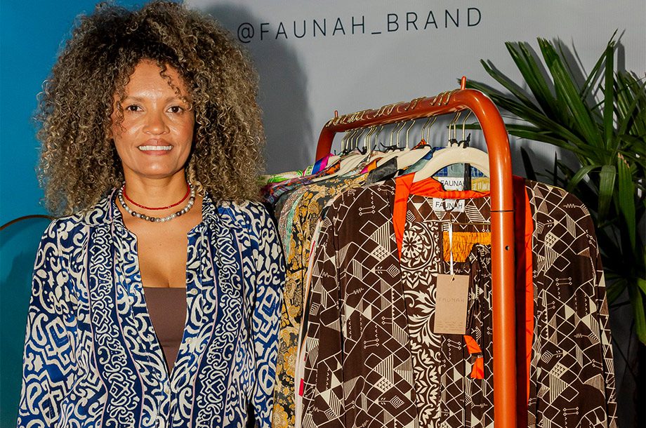 No mesmo estande, a Faunah apresenta a coleção Wind, com peças únicas, todas confeccionadas na Índia, a partir de tecidos reaproveitados. “A gente colabora muito com essa pauta da natureza. A indústria que mais polui no mundo hoje é a do petróleo, e a segunda é a da moda”, salientou Helly Verruno, diretora criativa da Faunah.