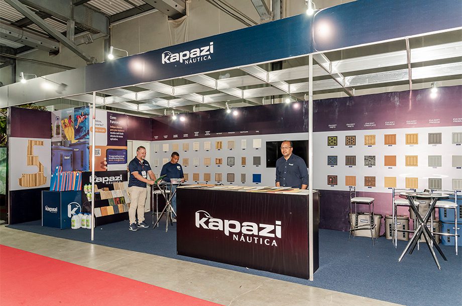 A Kapazi é uma marca brasileira com soluções voltadas ao acabamento e personalização de embarcações — reconhecida pela produção de tapetes e revestimentos. Entre os destaques no salão está a personalização em corte a laser, que permite criar projetos mais detalhados, complexos e exclusivos.