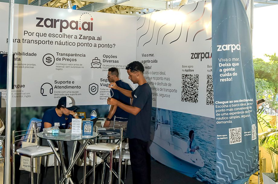 “O Uber dos mares”. É assim que pode ser definida a Zarpa.ai, aplicativo de mobilidade náutica que opera em Angra dos Reis. A ideia é simples: você baixa o aplicativo gratuitamente, chama um taxi-boat, define o trajeto, acerta o preço com o marinheiro via app e pronto, chegará ao seu destino. No evento, a equipe está disponível para tirar qualquer dúvida sobre a plataforma.