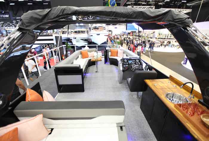 O estaleiro Lanchas Solara aproveitou o São Paulo Boat Show 2021 para se lançar no mercado de pontoons. Trazendo inspiração do mercado norte-americano, a marca lançou seu modelo de 30 pés para suprir uma necessidade de embarcações equipadas com motor de popa. “Ao invés de adaptarmos nossas lanchas para o uso de motores de popa, resolvemos criar um modelo específico para isso”, relatou Celso Antunes.