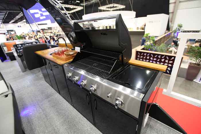 A frente e a targa do modelo são fabricadas em fibra de vidro, com laterais em verdugo de alumínio, o que Celso destaca como um dos diferenciais do modelo, porque tira um pouco da “cara de balsa”. “Nós procuramos não entrar como concorrentes do pessoal que já está no mercado há anos, buscamos fazer um pontoon mais esportivo, diferenciado, puxando mais para o americano”, completou.