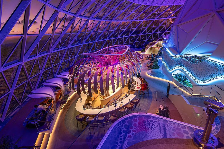 - Aquadome: para garantir refeições variadas a bordo, o espaço abriga um complexo de restaurantes e bares, além do Aquatheater, teatro que recebe apresentações acrobáticas e aquáticas;