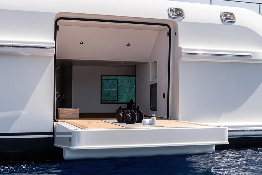 Aqui, vale destacar a suíte principal, que ocupa toda a largura da boca do barco (9,8 metros). No cômodo, o futuro proprietário encontrará um espaço que vai muito além da hora de dormir. O ambiente dispõe de área de estar, varanda privativa e um escritório com vista panorâmica para o oceano.