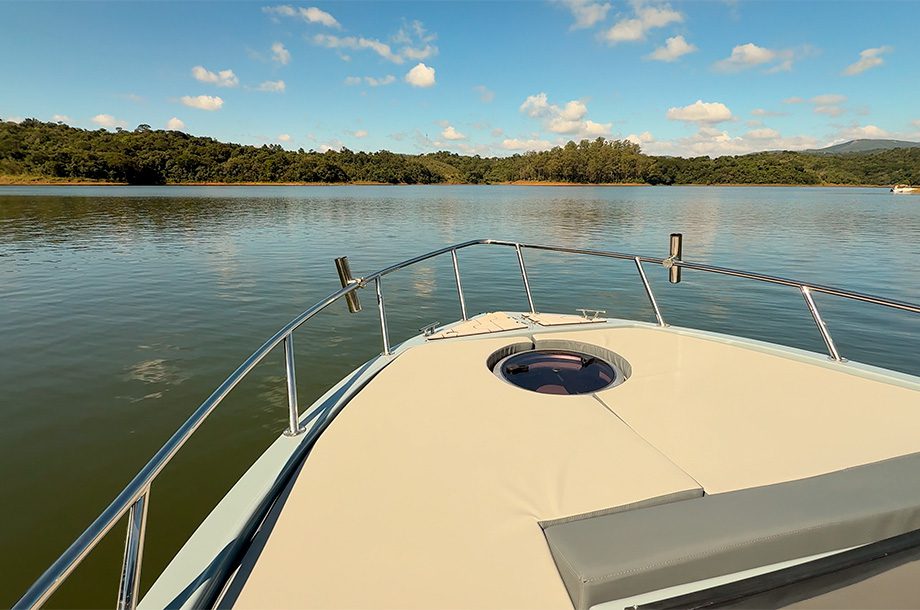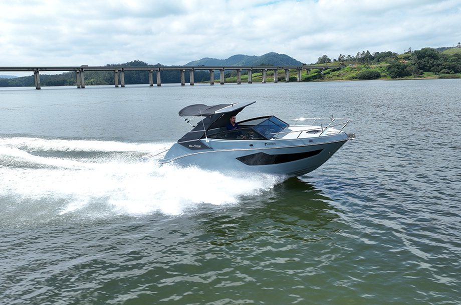 Barco chega com cockpit espaçoso e cabine com banheiro fechado, além de poder ser motorizado com motor de centro ou popa