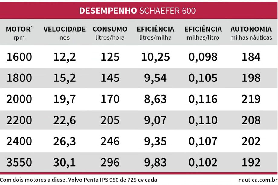 Preço: a partir de R$ 15 milhões (com dois motores Volvo Penta IPS 950 de 725 cv cada).