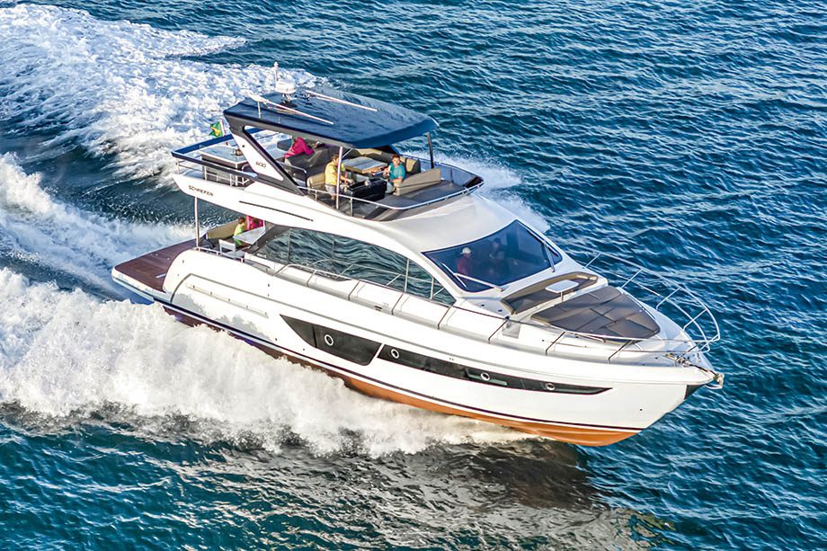 Seu mais novo modelo, a Schaefer 600, é uma síntese perfeita de tudo isso. Desenhada, detalhe por detalhe, no escritório de projetos do próprio estaleiro, a lancha é uma espécie de irmã menor da Schaefer 660, que caiu no gosto dos fãs da marca, com dezenas de unidades vendidas.