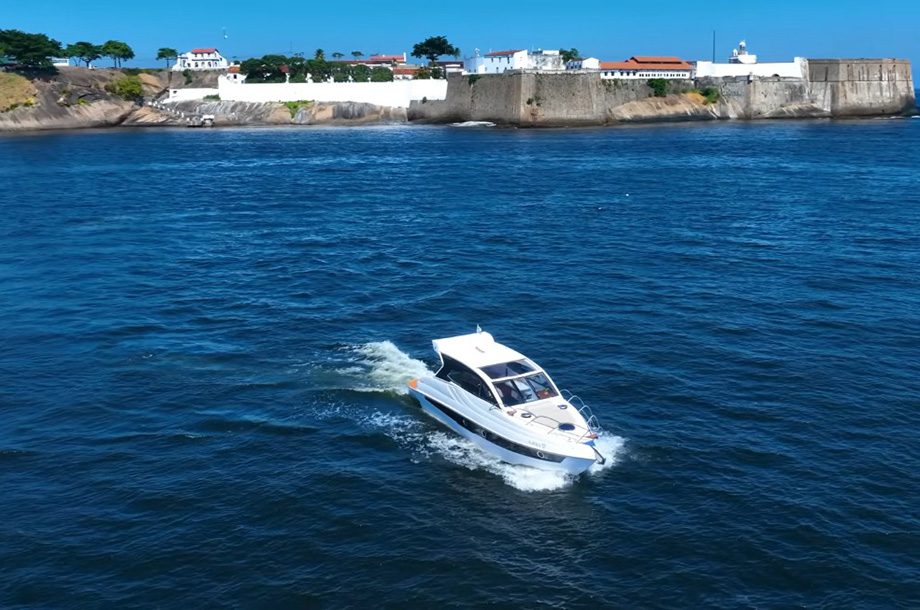 Navegando na Baía de Guanabara, na região de Niterói (RJ), a equipe da NÁUTICA colocou à prova o desempenho do mais novo motor da japonesa Yanmar, o centro-rabeta 8LV, um V8 a diesel que oferece três versões de potência: 320 hp, 350 hp e 370 hp.