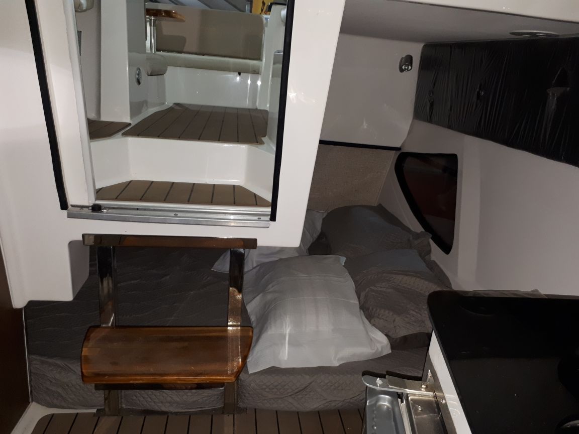 De linhas elegantes, a V300 tem capacidade para 11 pessoas de dia e quatro em pernoite. A cabine, com pé-direito de 1,85 m na entrada, inclui banheiro, cozinha e pode ser preparada para receber ar-condicionado e gerador. O cockpit é bem aproveitado e o casco corta bem as ondas. A lancha sai a partir de R$ 299 900 com motor Volvo mecânico de 350 hp e montagem, com 50% do valor de entrada e o saldo dividido em 12 vezes sem juros durante o evento.