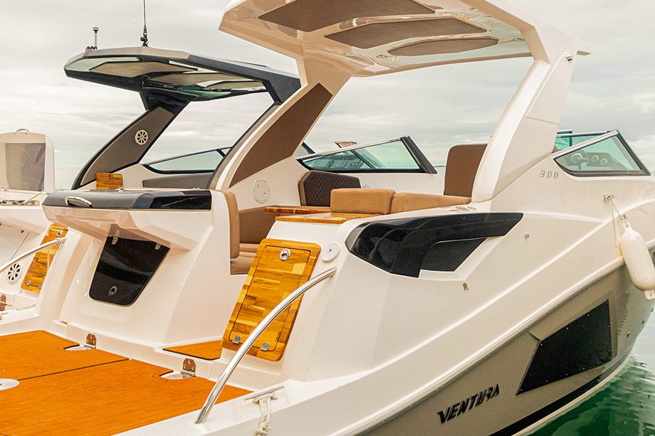 Para os apaixonados por navegação, a Ventura levará três lanchas: duas unidades da V300 Crossover — em versões com motor centro-rabeta e dupla motorização de popa — e a V370 Crossover, recém lançada ao mercado no último São Paulo Boat Show, em setembro.