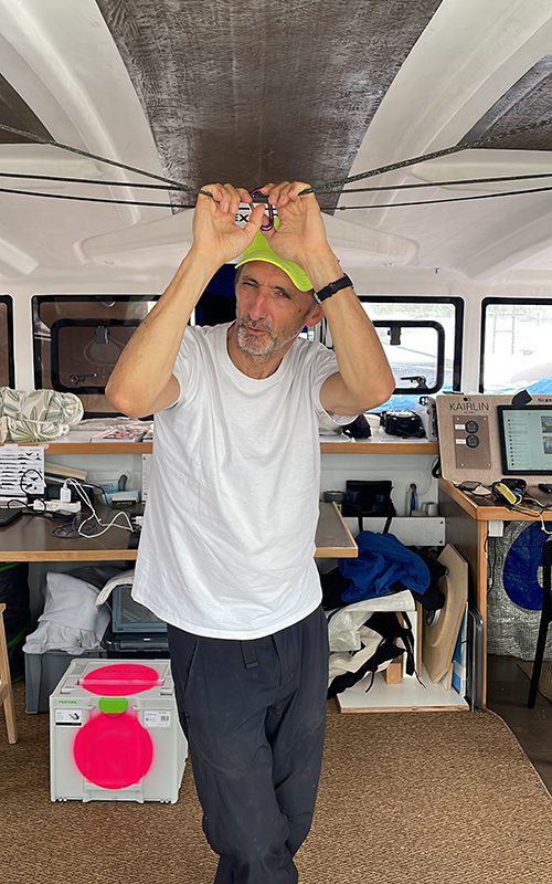 A campanha a bordo do catamarã We Explore — modelo Outremer 5X, sustentável, construído com 50% fibra de linho — teve como companhia figuras como Roland Jourdain, bicampeão da regata transatlântica Routedu Rhum, no posto de capitão, além de Denis Juhel como vice-assistente.