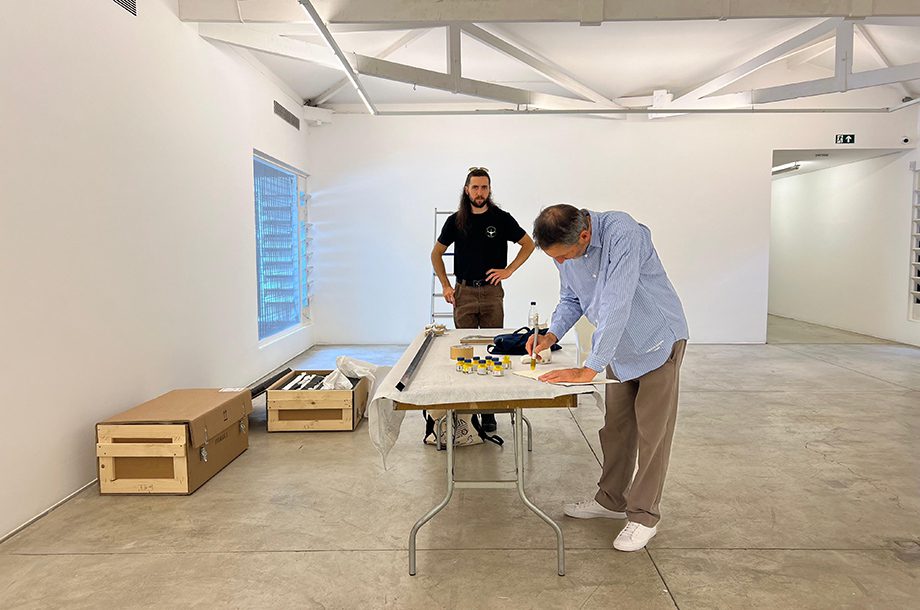 Em entrevista à NÁUTICA, Xavier, diretamente da Oficina São João — onde fazia os últimos ajustes de suas obras — , explicou como essa ideia saiu do papel. A partir de diferentes discussões com sua equipe — entre elas, as dificuldades de viajar para longe e realizar uma exposição de arte –, surgiu a proposta de iniciar uma jornada sem nenhum avião.