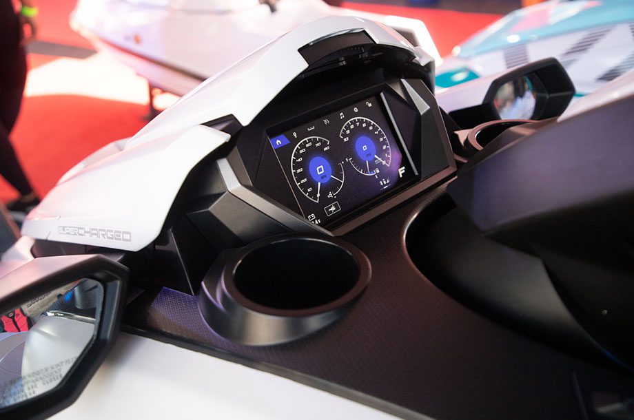 Não faltam recursos nessa moto aquática que combina estilo e performance. Equipado com motor turbo e alto-falantes da Yamaha, o jet tem suporte para celular, GPS e outras tecnologias. Basta colocar a carta náutica e aparece tudo no painel integrado com o piloto.